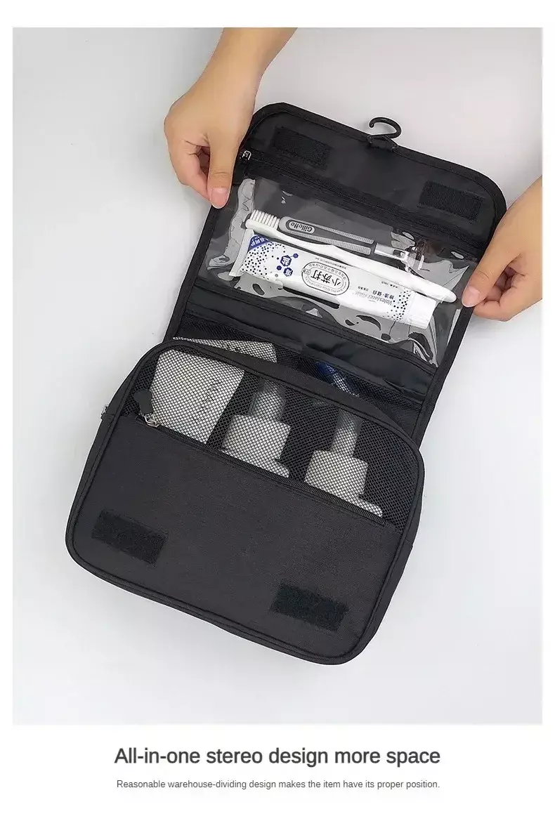 • Grande capacidade:Esta bolsa de higiene tem um interior espaçoso que pode acomodar todos os cosméticos e produtos de higiene pessoal, tornando-a perfeita para viagens de longa distância.